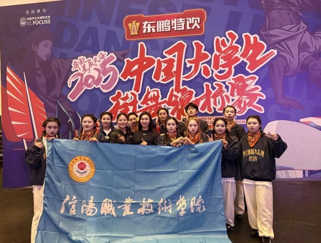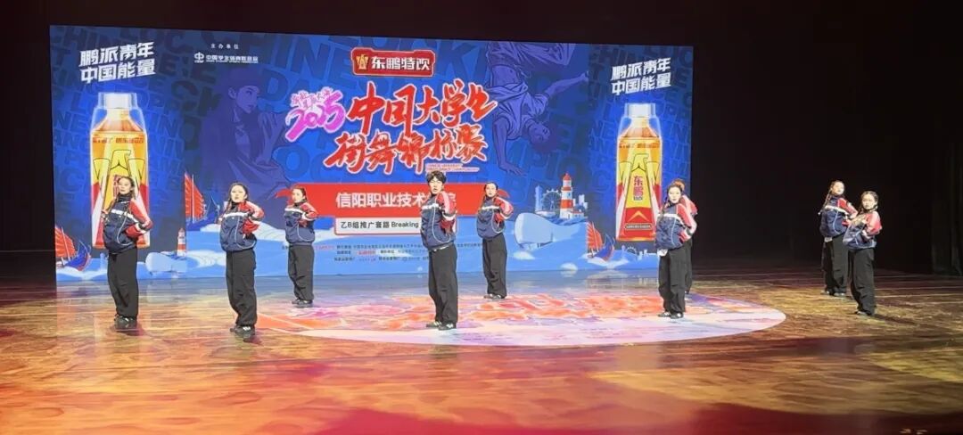 全国顶尖高校的街舞强者齐聚一堂,每一支队伍都带着十足的冲劲。对我们而言,这不仅是一场比赛,更是一次对自己的检验。从拿到比赛通知的那天起,“卫冕”两个字就刻在了我们每个人的心里。此次征战的三个项目——2024版全国大学生街舞推广套路Hip Hop推广套路(小集体)、Breaking推广套路(小集体),以及综合风格齐舞(小集体),每一个都需要极致的精准与默契。我们一遍遍打磨动作,一次次调整队形,只为在赛场之上,呈现出最好的自己。最终,当颁奖典礼上裁判宣布冠军队伍,三次响起信阳职业技术学院时,所有的紧张与疲惫,都化作了此刻的激动与自豪。全国顶尖高校的街舞强者齐聚一堂,每一支队伍都带着十足的冲劲。对我们而言,这不仅是一场比赛,更是一次对自己的检验。从拿到比赛通知的那天起,“卫冕”两个字就刻在了我们每个人的心里。此次征战的三个项目——2024版全国大学生街舞推广套路Hip Hop推广套路(小集体)、Breaking推广套路(小集体),以及综合风格齐舞(小集体),每一个都需要极致的精准与默契。我们一遍遍打磨动作,一次次调整队形,只为在赛场之上,呈现出最好的自己。最终,当颁奖典礼上裁判宣布冠军队伍,三次响起信阳职业技术学院时,所有的紧张与疲惫,都化作了此刻的激动与自豪。