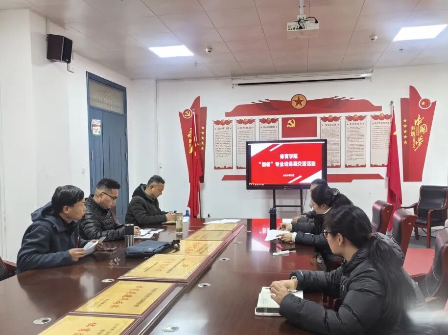 为深入贯彻新时代体育教育改革要求,落实高等职业学校办学能力评价相关精神,扎实推进专业内涵建设与课程改革,强化专业与课程的协同发展,近日,体育学院成功开展“剖析”专业说课程交流活动。学院领导、教研室主任及全体专任教师齐聚一堂,以“深度剖析、互学互鉴、共促提升”为宗旨,围绕专业建设与课程教学展开全方位研讨,凝聚育人共识,夯实教学根基。