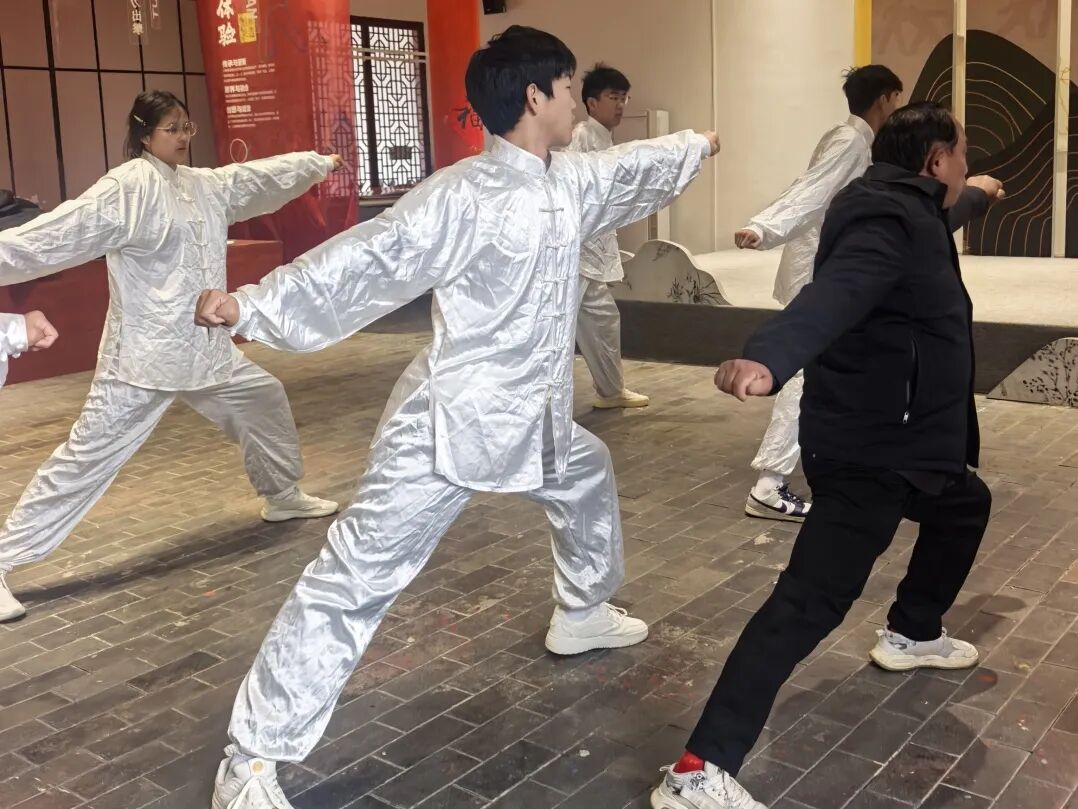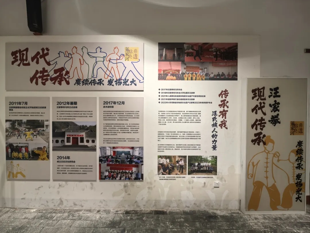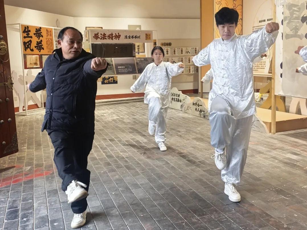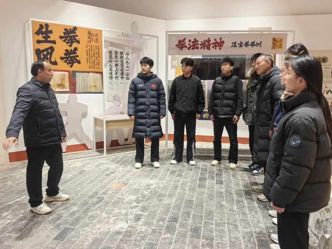 活动伊始,在汪家拳第十四代传人汪师傅的带领下,师生党员们走进基地非遗展馆。展馆内,泛黄的拳谱、斑驳的器械、珍贵的传承影像,无不诉说着汪家拳百年传承的历史脉络。