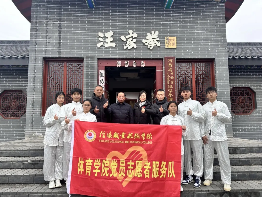 为深入推进“非遗进校园”系列活动落地见效,以党建引领强化传统体育非遗传承力度,近日,体育学院党支部牵头组织师生党员及入党积极分子,赴河南省非物质文化遗产汪家拳传承研究基地开展志愿服务实践活动。此次活动既是党支部锤炼党性的实践课堂,更是为“非遗进校园”后续校园推广工作筑牢基础的关键举措。